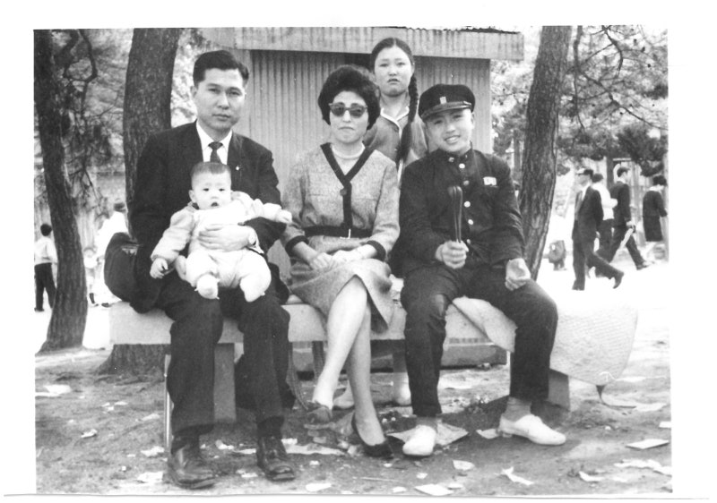 좌측에는 갓난아기인 지금의 김홍걸 의원을 안고 있는 김대중, 그리고 우측에는 첫째형 김홍일입니다.