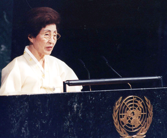 이희호 여사는 2002년 UN 아동특별총회에 한국 대표로 참석해